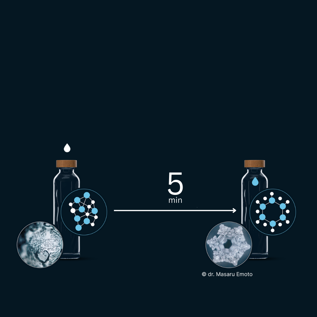 Fabriqué avec les études de Masaru Emoto, un scientifique Japonais qui a étudié le comportement de l’eau .