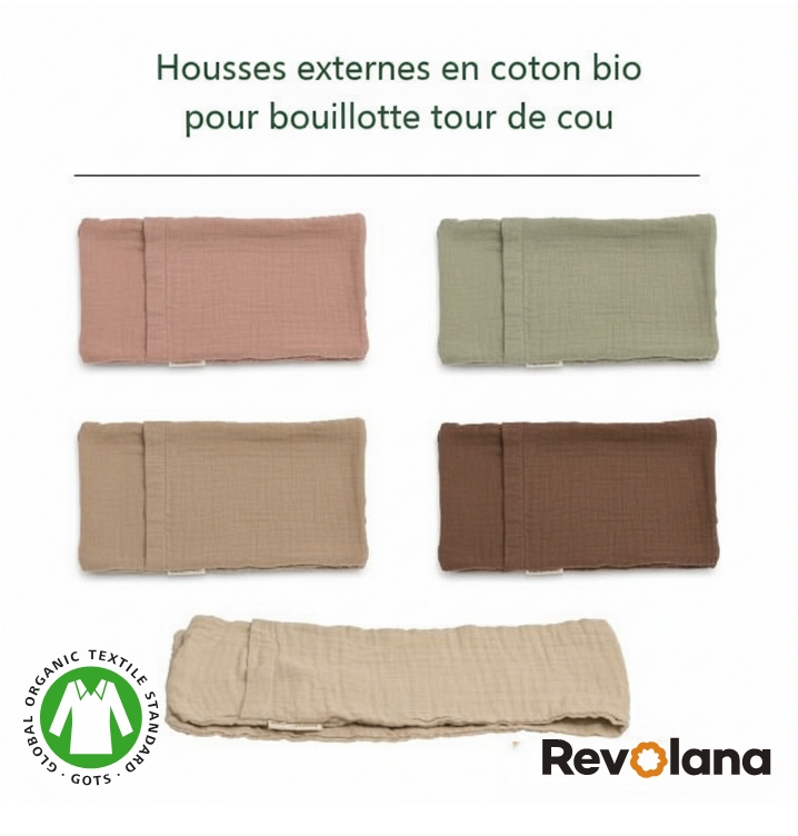 Housse externe en gaz de coton biologique pour bouillotte tour de cou 72x15cm.