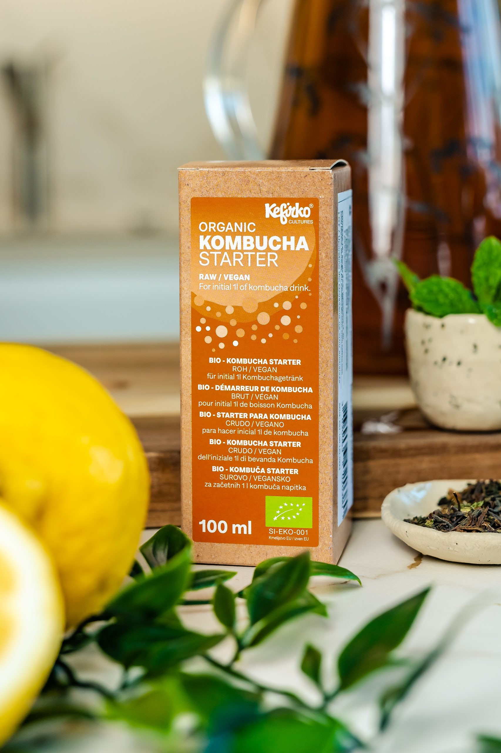 Culture certifiée issue de thé et sucre bio, sans additifs ni conservateurs.